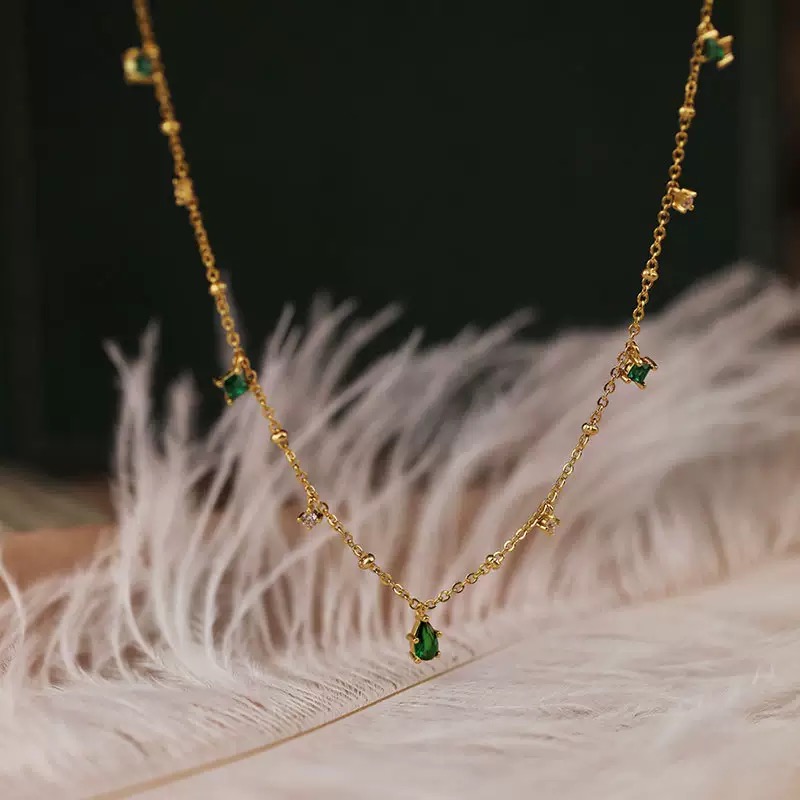 Twinkglo™ Water droplet green zircon tassel necklace